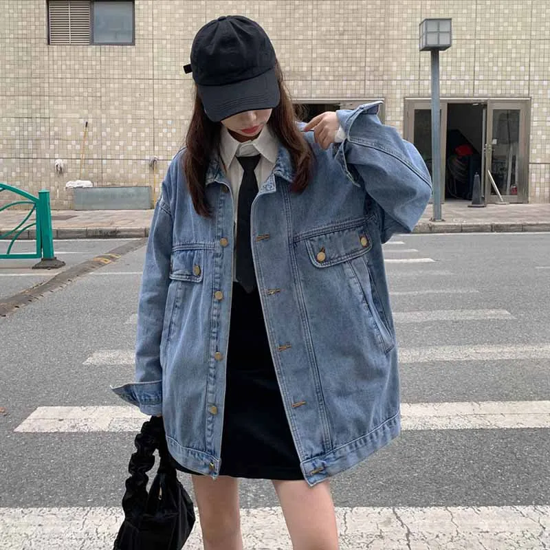Wholesale Plain Korean Style Bf Loose Jeans Medium Length Long Sleeved Fashion Oversized Denim Jacket Women Buy Denim Jacket Women Oversized Denim Jacket Wholesale Plain Denim Jacket Product On Alibaba Com